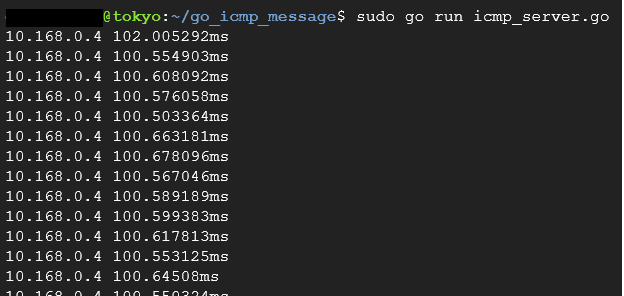 今回はICMPの応答を正確に計るためにPingコマンドではなく、Go言語でプログラムを作成しました。