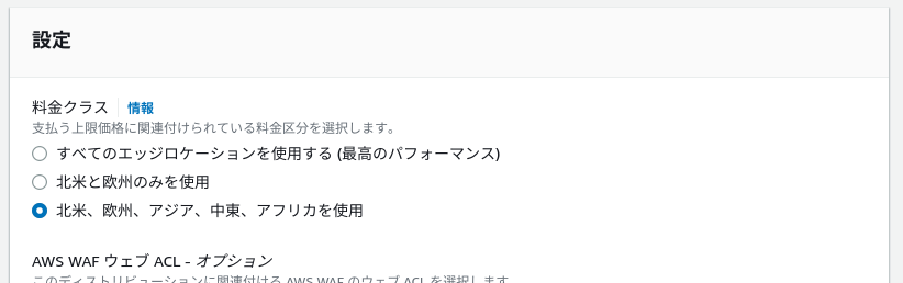 設定の料金クラスでは、日本国内からのアクセスを想定しているので、「北米、欧州、アジア、中東、アフリカを使用」を選択しました。